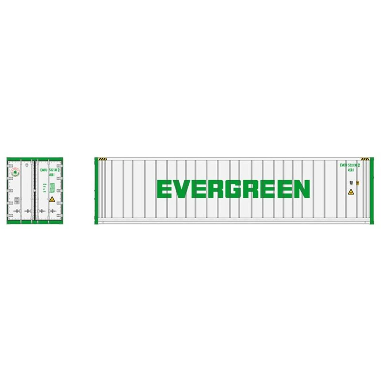 FEATURES: • Side corrugations with an 8-55-8 arrangement • Front wall with 10 vertical corrugations • Roof with 6-54-6 corrugations • 1-3-1 beveled doors • Placard holders on front wall, sides and door • Each set comes as a 3-pack w/different road numbers Atlas N Scale 40′ Refrigerated Container [3-PACKS] Evergreen Set #1 (White/Green) Road Name: Evergreen (EMCU) Road Number: 5321382, 5321401, 5321443 Photo may not show actual road number. Please see description above for the road number.