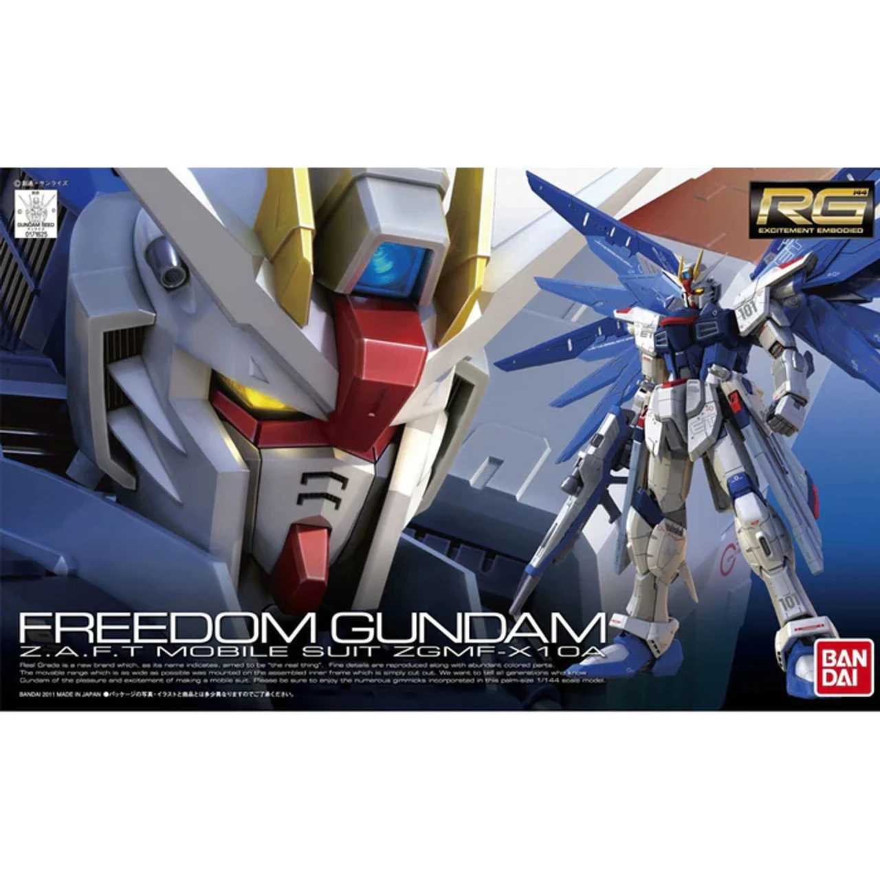 Based on the Mobile Suit Gundam SEED anime, the Freedom Gundam model kit is in 1/144 scale and becomes a fully articulated figure once complete. The Freedom Gundam also includes interchangeable hands for holding different weaponry. Special marking stickers are provided to simulate the realistic placement of maintenance hatches and ports.Â