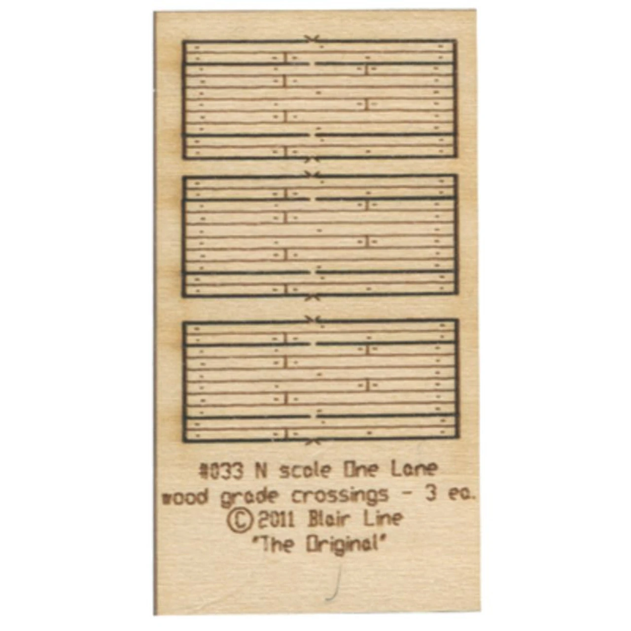 Each highway cossing is fully assembled and ready to paint/stain and install. Blair Line N Scale Wood Grade Crossing pkg(3) — One Lane
