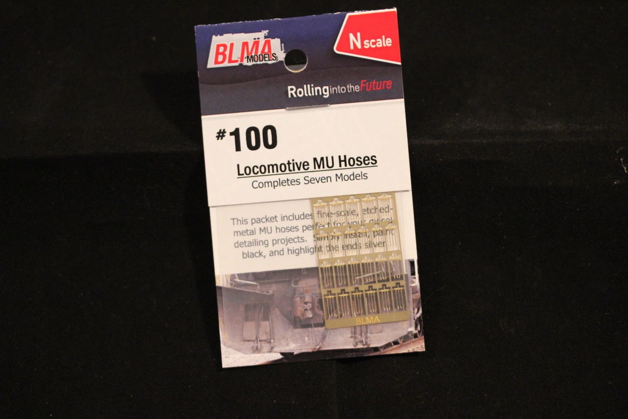Locomotive MU Hoses Prototype History:MU Hoses are found on all diesel and electric locomotives. The “MU” in the name refers to the fact that these hoses allow for Multiple Unit lash-ups where two or more locomotives are used in a single consist. Model Description:Our etched metal MU Hoses capture the “thin” look of the real thing while also taking advantage of the metals durability (over that of cast metal or other fine materials). Installation Instructions Simply drill a single #80 hole, put the mounting tab on the top of the air hoses into the hole, secure with glue and enjoy! We recommend painting the hoses black with a small touch of silver on the hose connectors (at the end of each hose).
