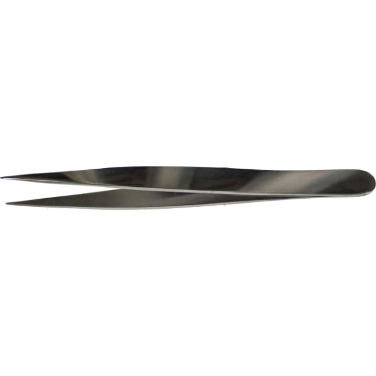 Fine straight point tweezers for precision use. These tweezers come in a polished silver finish. Can be used use to pick up tiny pieces of solder for working with jewelry, used for micro electronics, model trains, nail art, rhinestoning, and more.