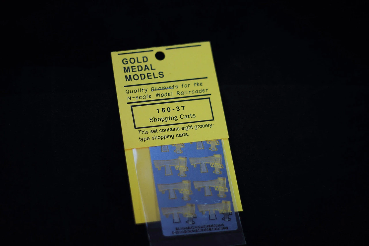Grocery Store Shopping Carts Gold Medal Models No scene is complete without the details and Gold Medal Models provides all the parts to make your’s complete. Eight carts that fold to shape without assembly. Will actually “stack” as per prototype. Etched in .005″ stainless steel