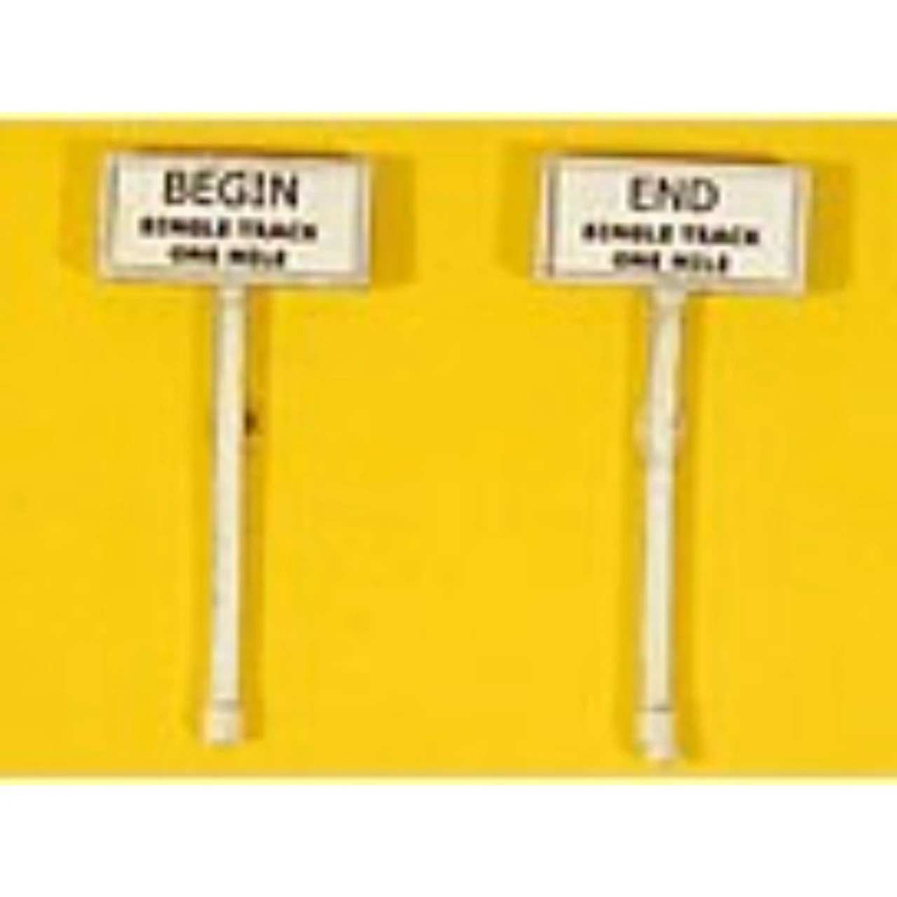 Begin/End Single Track sign set – 2 cast metal pre-painted, labeled and weathered signs. JL Innovative HO Scale Begin/End Single Track Signs (2)