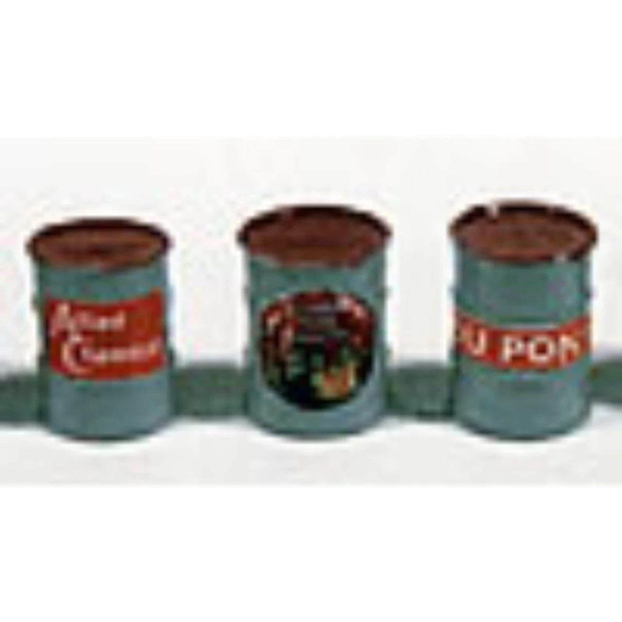 A variety of vintage paint and chemical labels on gray barrels with red tops. (5 barrels per pack) JL Innovative HO Scale Custom Barrel Paint & Chemical, Gray w/Red Top (5) Road Name: Road Number: Photo may not show actual road number . Please see description for actual road number