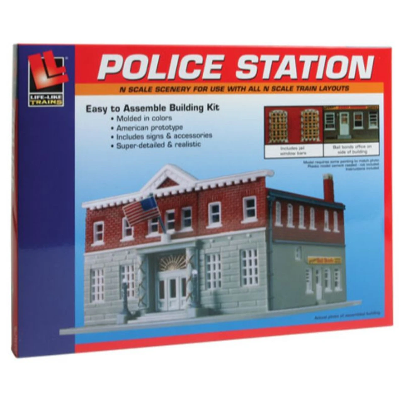 Designed for easy construction, with plastic parts molded in realistic color. This unique law-enforcement building houses a jail and a bail bonds office. Life-Like N Scale 5th Precinct Police Station Road Name: Road Number: Photo may not show actual road number . Please see description for actual road number