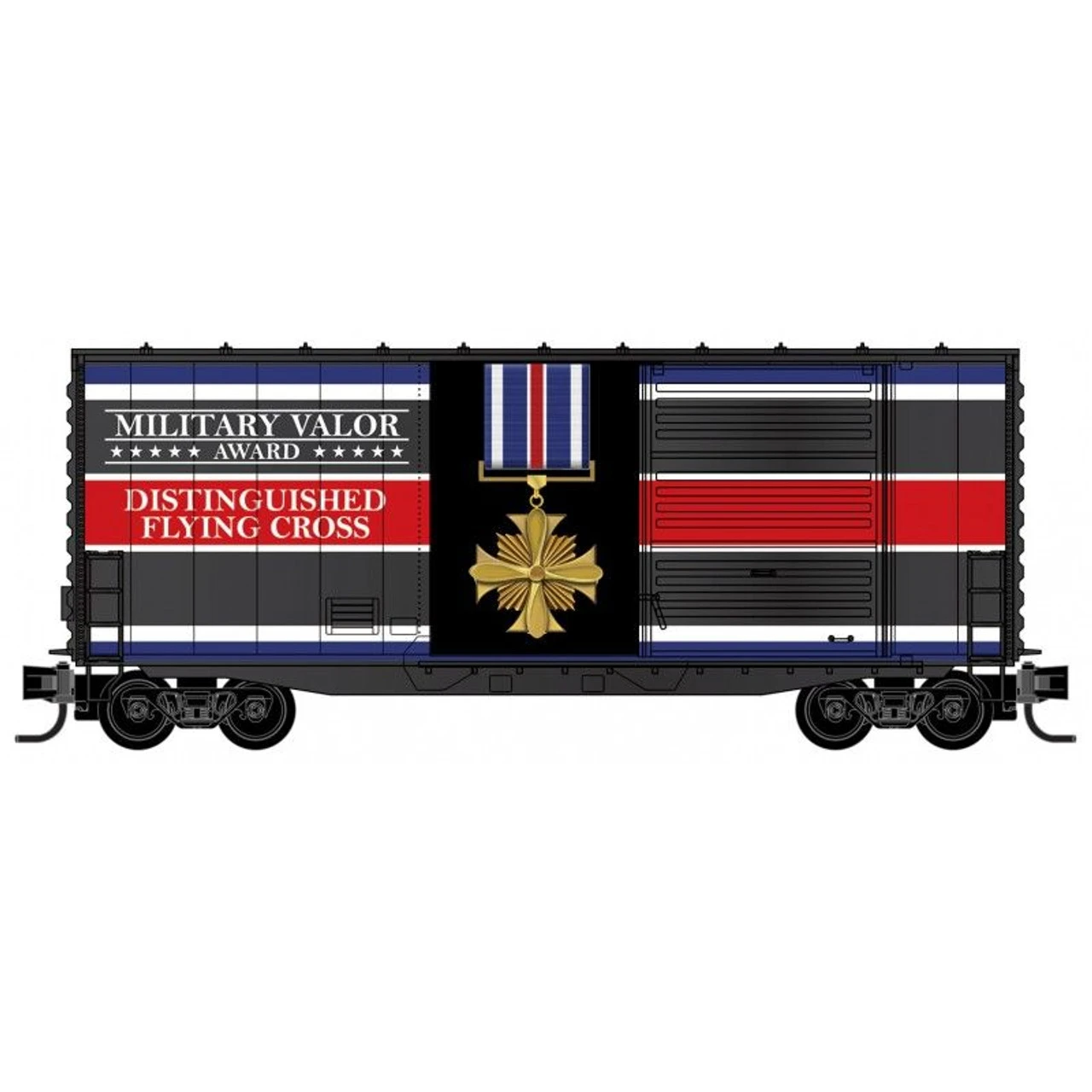 The Distinguished Service Cross is awarded to members of the United States Military for extraordinary heroism in combat. These 40’ hy-cube box cars will include a recessed image of the individual medal. Medals are for decoration only, not an actual medal.