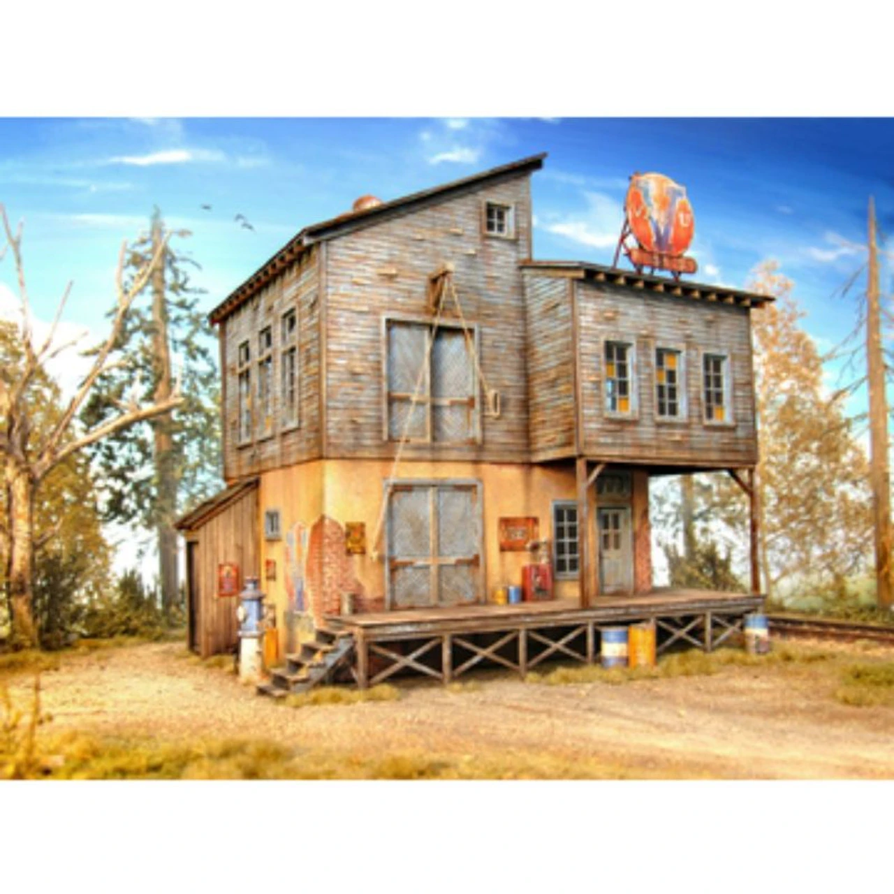 This is the first in a series of kits in partnership with Jason Jensen of Jason Jensen Trains. This is Jason’s design and build of a small fuel and oil warehouse. The Val-U brand includes fuel, oil and other petroleum products. The warehouse has seen better days but is still in operation. The pictures for this kit depict heavy weathering. If you wish to achieve this look, we are including Jason’s weathering instructions along with our step-by-step instructions for this kit. Click on the instructions tab above for this information. This kit measures approximately 5 1/2″ by 5 1/4″. The kit features: *Precision laser cut parts including peel-and-stick backed windows for easy assembly *Pewter metal casting details to add character *Easy to assemble tab-and-slot-construction *High resolution graphics *Waterslide decals *Detailed step-by-step instructions Showcase Miniatures HO Scale Val-U Fuels & Oils