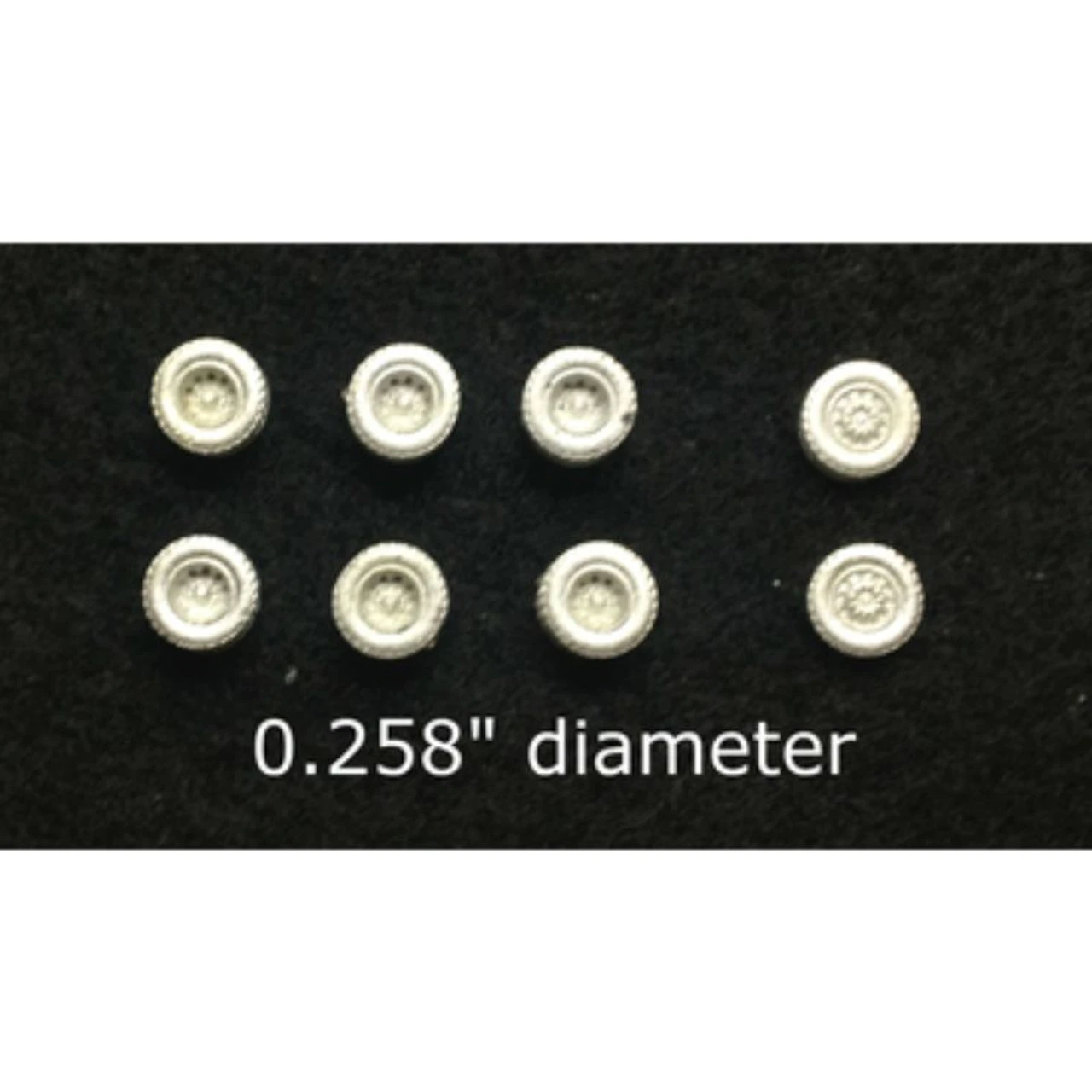 These Heavy Duty Wheel Sets can be used to customize Showcase Miniatures’ N Scale trucks that do not have cast-in-place wheels. The diameter is 0.25″. They are designed to fit .100″ diameter hubs. Showcase Miniatures N Scale Tri-Axle Heavy Duty Alloy Wheels