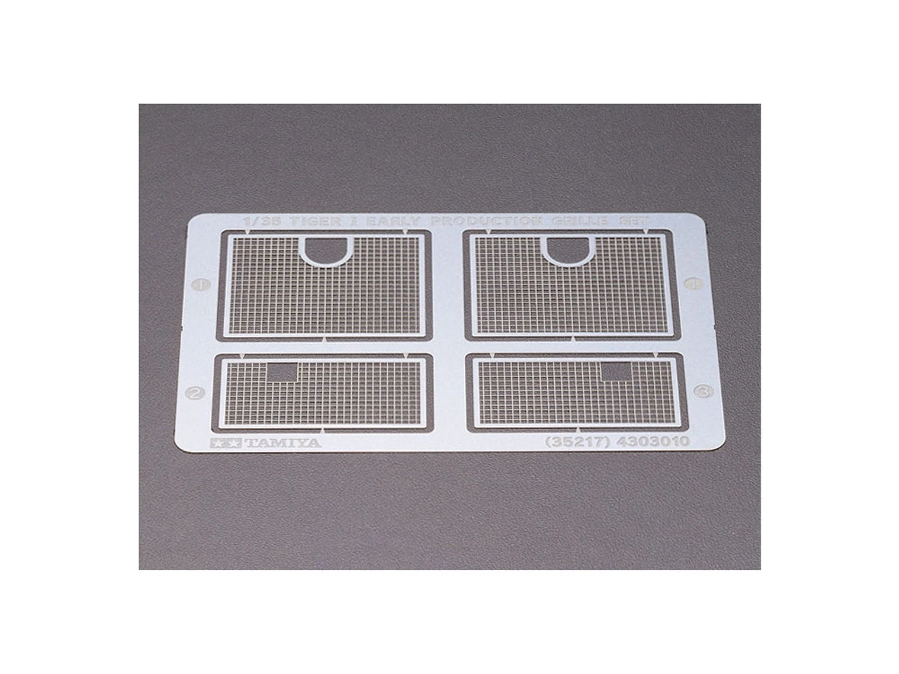 Compared with the Mid and Late Production German Tiger I heavy tank, the Early Production model featured subtle layout differences to its engine room. ★This Photo-Etched Grille set will add greater realism to your model highlighting the upper surface of the engine room. ★Set includes four square shaped pieces to the depict bullet proof grilles for the air cooling ducts and vents.