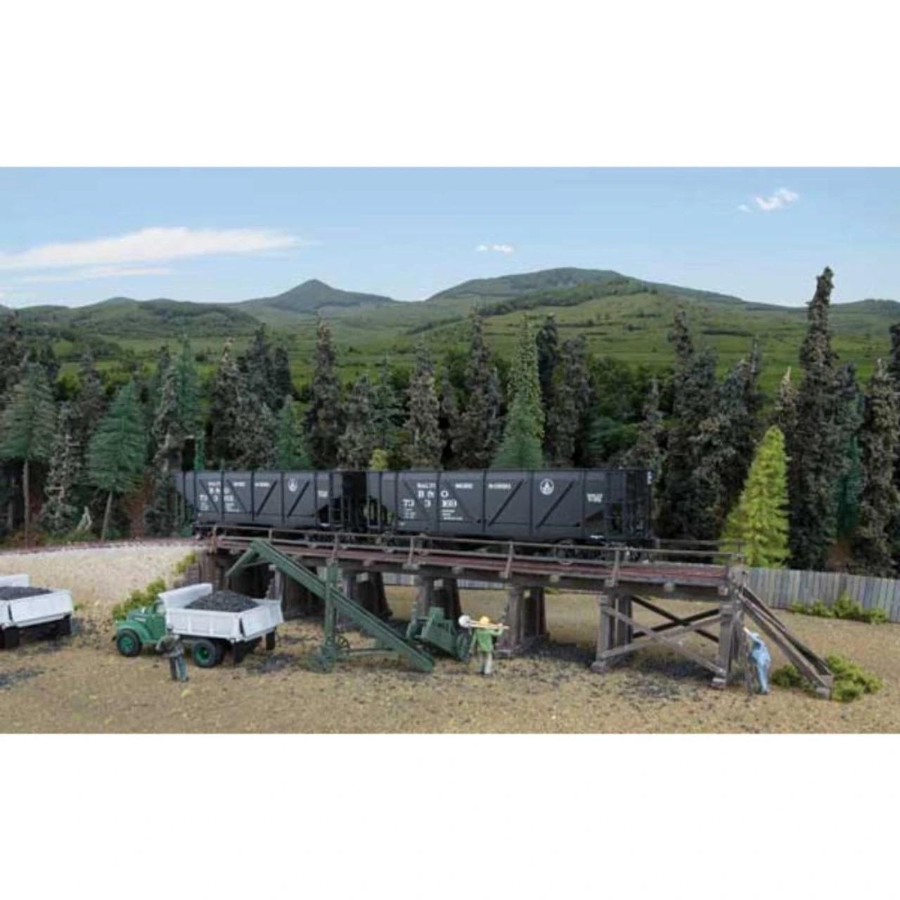 Make quick work of coal deliveries in tight spaces with the HO Coal Trestle kit from Cornerstone! Installed in tight city lots and rural locations, the prototypes used gravity to speed unloading (and retun to the railroads) of hoppers from the 1900s to the 1960s. Other features include: Molded ramp simplifies modeling track on grade Detailed trestle with supports, abutment, railing and walkway – optional bulkheads to build below-track storage bins also included Separate coal conveyor – prototypes also moved sand and gravel from hoppers to trucks Great addition to trackside coal dealers, lumber and building materials yards, heavy industries and more Coal Trestle — Kit – 24-1/2 x 4-3/8 x 1-3/4″ 62.3 x 11.1 x 4.4cm