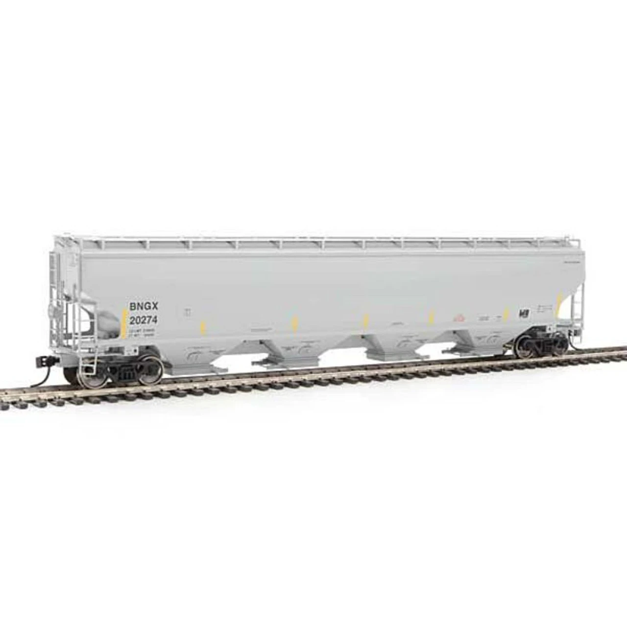 Expand grain traffic in minutes with layout-ready WalthersProto(R) 67′ Trinity 6351 Four-Bay Covered Hoppers! Introduced in the early 2000s, these large-capacity cars are industry favorites for handling dried distillers grains (DDG), malt and many other food products. Other features of these HO Scale replicas include: