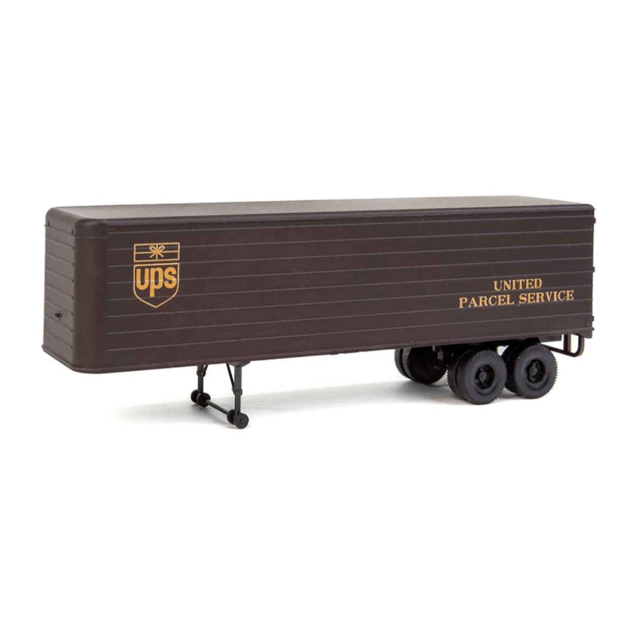 Detail highways, loading and shipping docks, piggyback flats and terminals, and more in minutes with these 35′ Fluted-Side Trailer Two-Packs from Walthers SceneMaster. Highly detailed and finished in colorful period paint and lettering schemes, 40′ trailers were the backbone of trucking and railroad fleets from the late 1940s to early 1960s. Parts are included for two complete trailers, and each can be assembled with the landing gear in either the up or down position, perfect for over-the-road scenes, or as loads aboard WalthersMainline 75′ or 53′ Piggyback Flatcars, each sold separately. Expand UPS(R) service anywhere along your HO layout with this SceneMaster Fluted Side Trailer 2-Pack! Highly detailed and perfect for layout or collection, it’s based on equipment used by United Parcel Service in the 1950s and 1960s. The set includes two trailers finished in the correct brown, with the original bow tie logo and United Parcel Service lettering in gold. Optional landing gear in the up (transport) and down (parked) positions is also included. Now its easy to add UPS(R) service to your HO layout with this exciting series of officially licensed replicas from Walthers that includes Cornerstone structure kits, SceneMaster vehicles and figures!