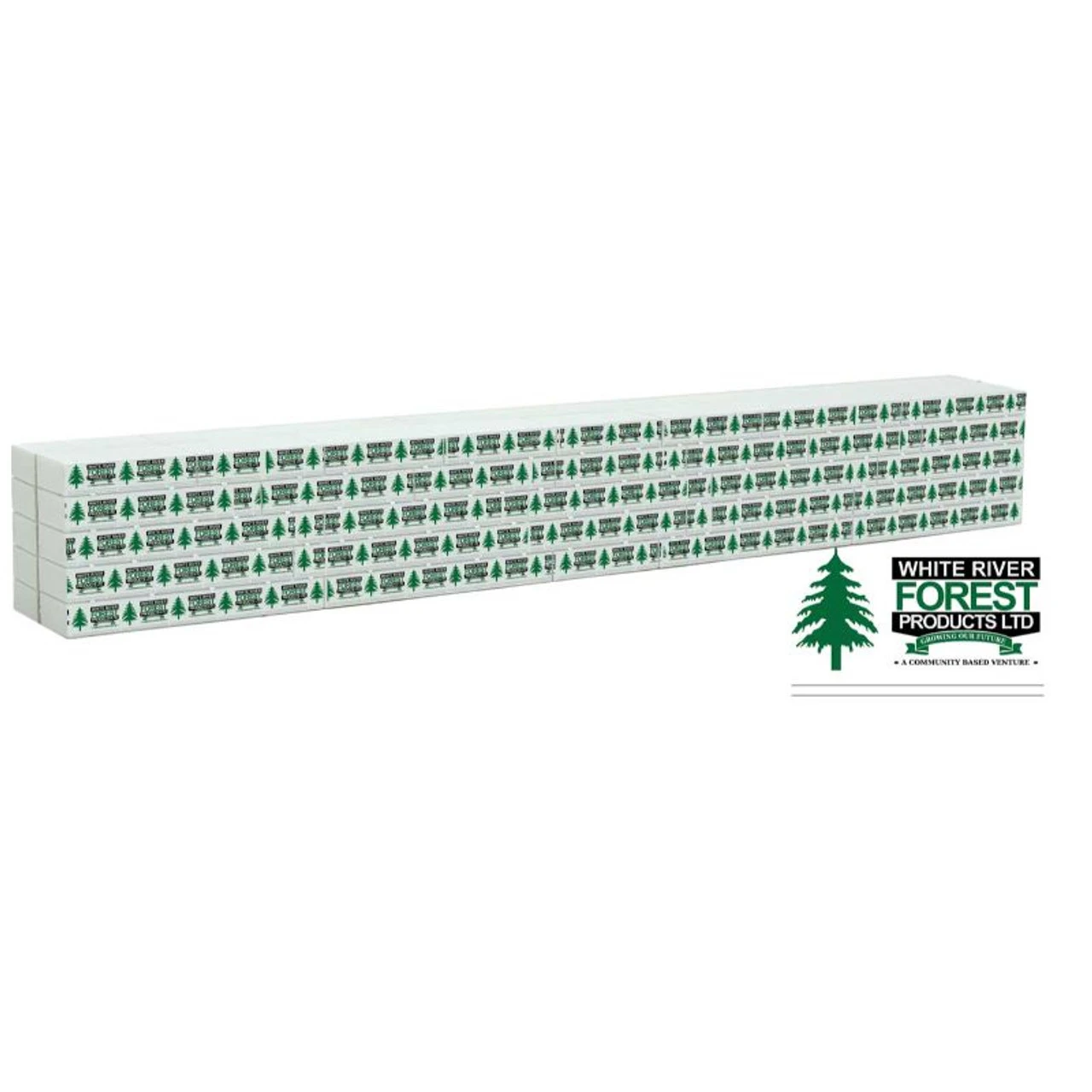 Put your railroad to work moving these Walthers SceneMaster Wrapped Lumber Loads from sawmills to local building suppliers. Made especially for the HO WalthersMainline 72′ Centerbeam Flatcars (#910-4800 series, each sold separately) and adpatable to most cars with a smiliar interior length, each is prepainted and lettered in authentic schemes, and snaps easily onto the car to add realistic detail in a matter of minutes. Walthers HO Scale Wrapped Lumber Load for 72′ Centerbeam Road Name: White River Forest Products Road Number: Photo may not show actual road number . Please see description for actual road number