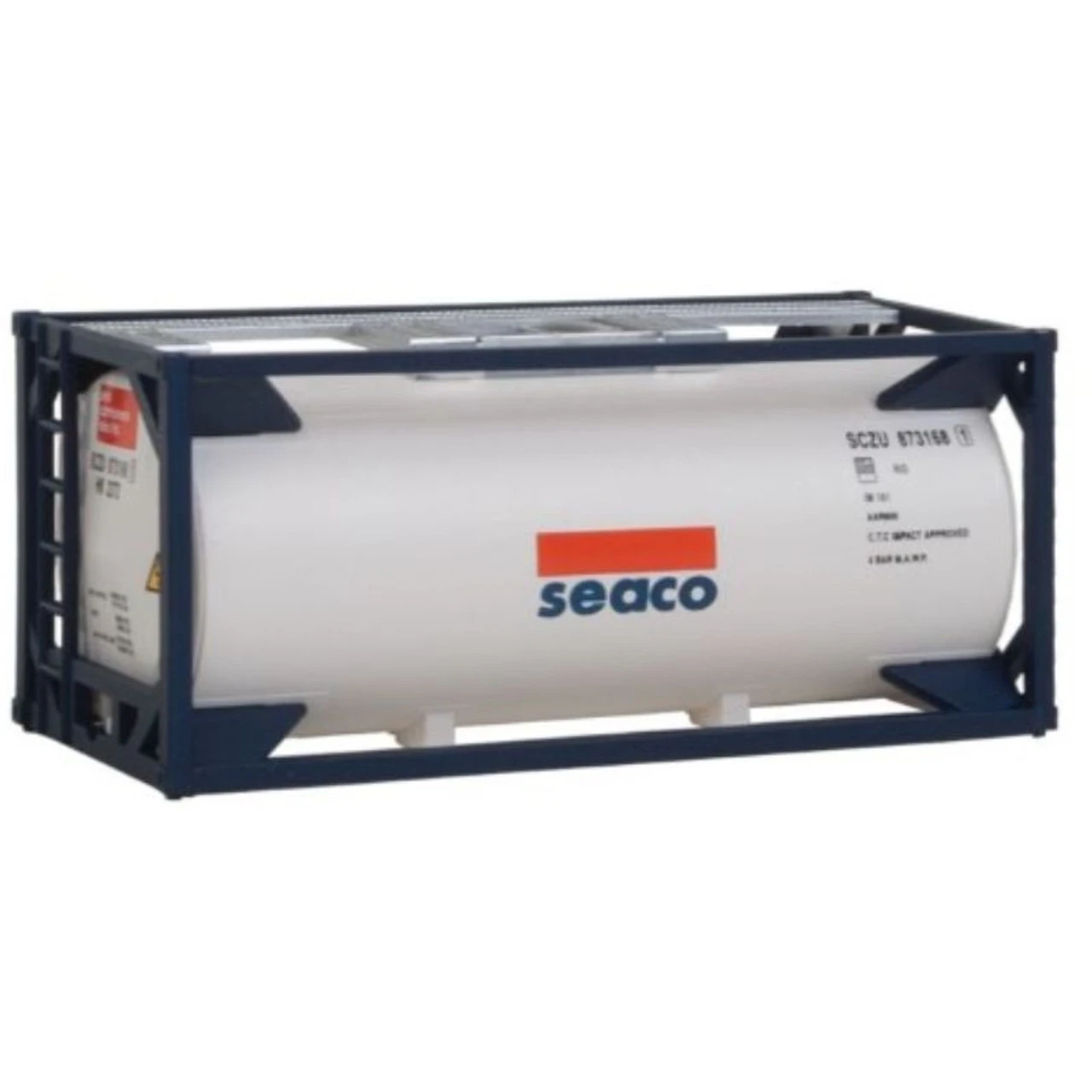 Product Information * Prepainted & lettered * Easy assembly * Realistic loads for WalthersProto(R), WalthersMainline(R) & other well cars * Great detail for terminals, highways and industrial scenes Walthers HO Scale 20′ Tank Container Seaco