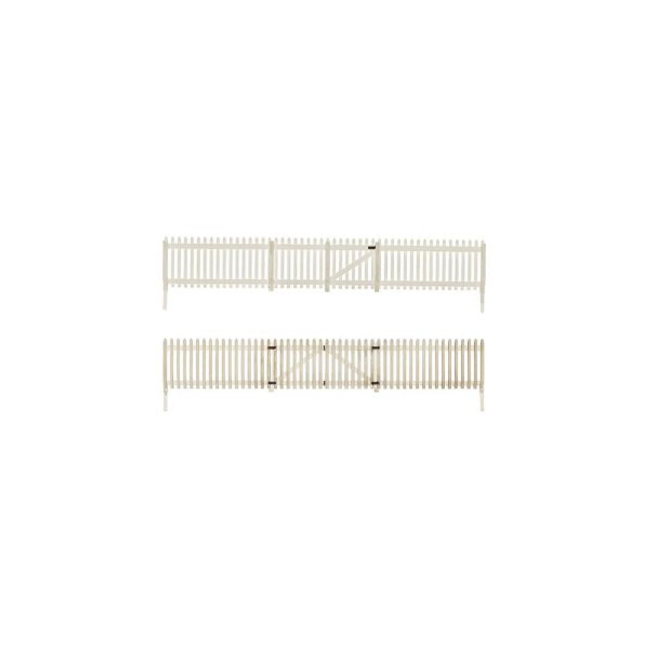 Add character to any scene with hand-painted and authentically weathered HO scale Picket Fence. Easily assemble the Fence on your layout by aligning the modular pieces. Features gates, detailed hinges and planter pins for simple installation. Perfect for suburban areas and neighborhoods Represents 192 scale feet (58.5 scale meters)/26.5″ (67.3 cm) actual total length. See Kit Contents for height and individual piece length. Kit includes: 1 Fence section with double gate 1 Fence section with single gate 6 Fence sections Length: 8 pieces = 3.31″ (84.1 mm) each Height (not including mounting pins): 4 scale feet (1.21 scale meters)/0.55″ (14 mm) actual Woodland Scenics HO Scale Picket Fence